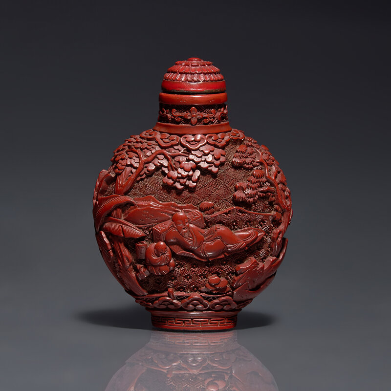 A Chinese Carved Cinnabar Lacquer Snuff Bottle, Late 18th-19th Century