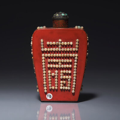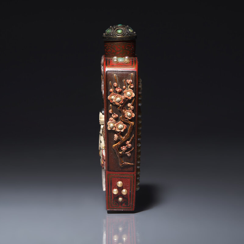 晚清-民國 日式紅漆地嵌寳仕女圖鼻烟壺