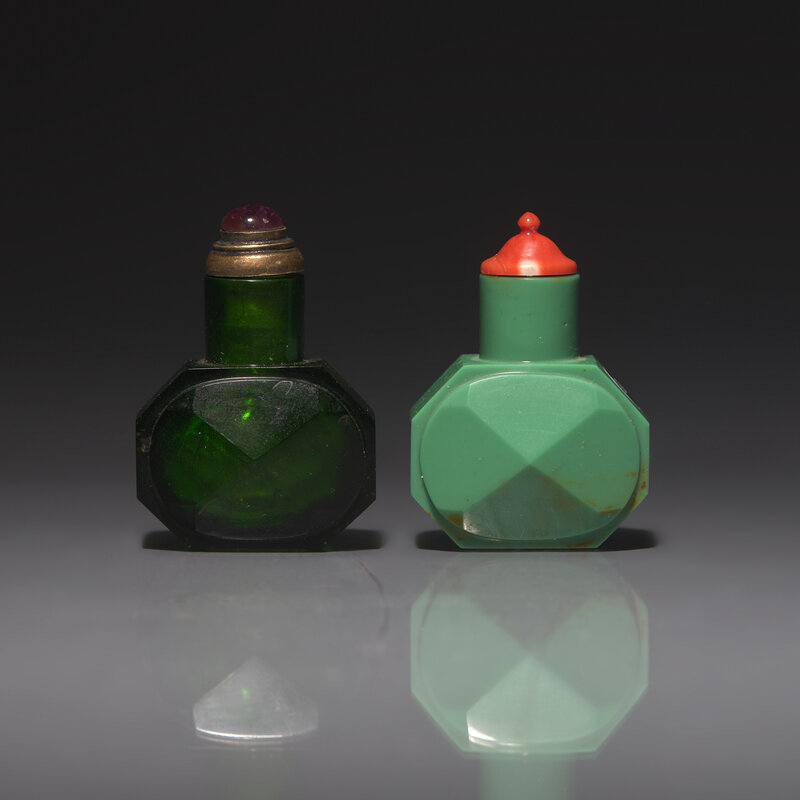 清中期 綠料磨棱鼻烟壺兩支