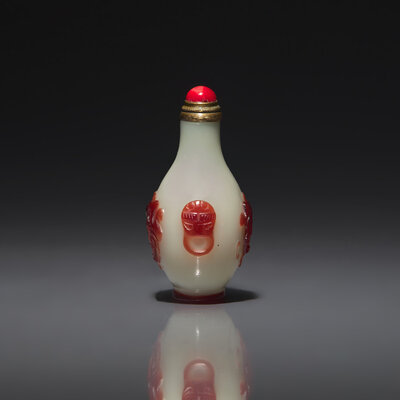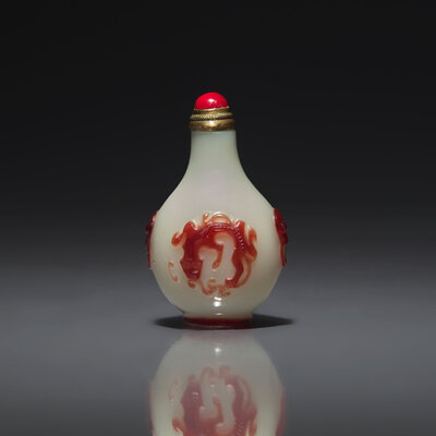 1750-1820年 涅白地套寶石紅料螭龍紋小鼻烟壺