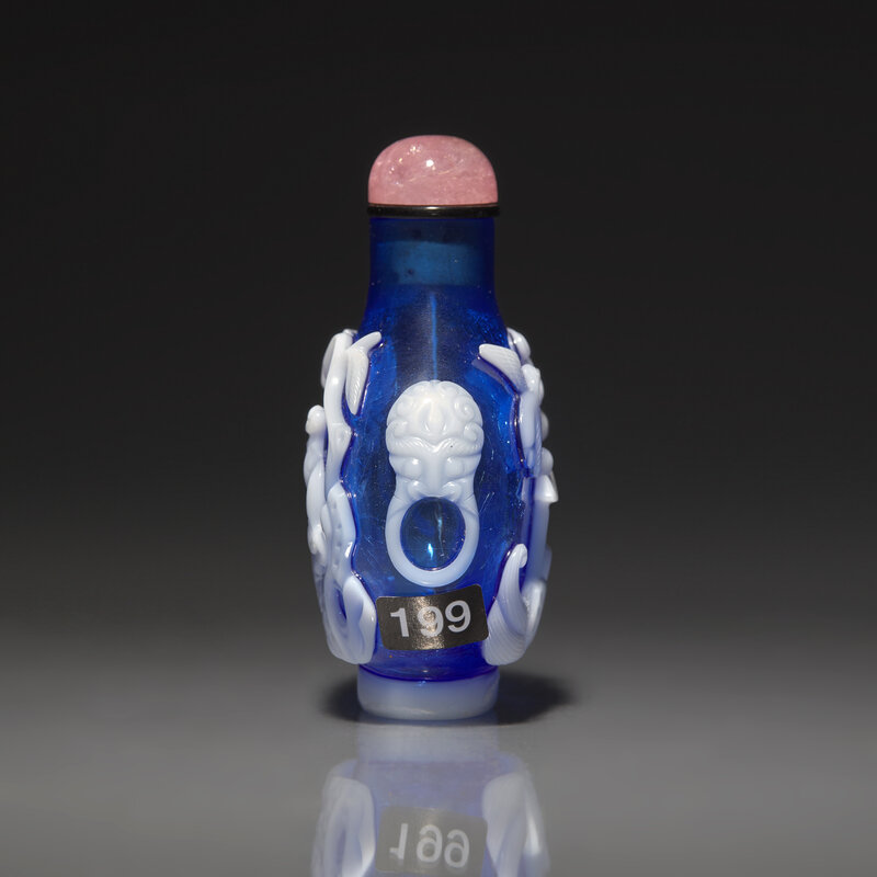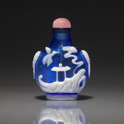 A Chinese White Overlay Blue Glass Snuff Bottle, Qing Dynasty, Possibly 18th-Early 19th Century