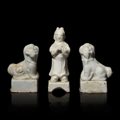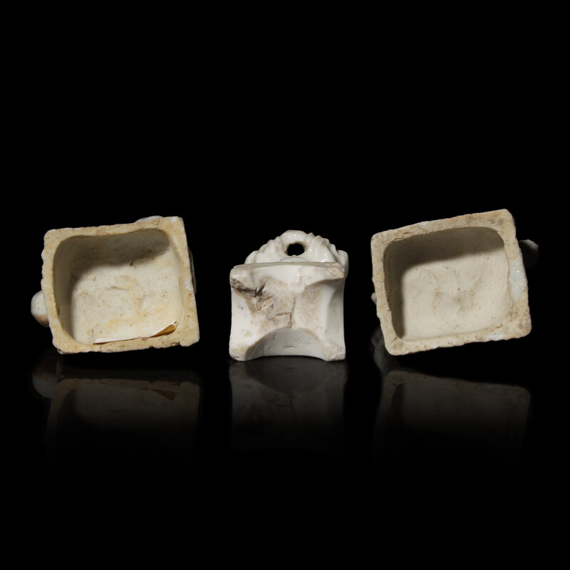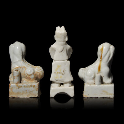 Three Small Korean White Glazed Porcelain Figural Joss Stick Holders, 16th/17th Century