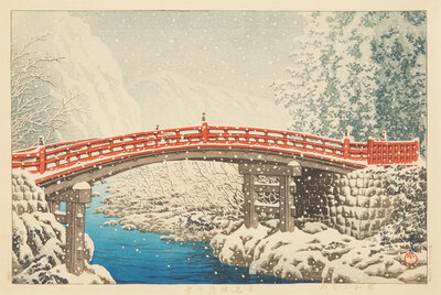 Kawase Hasui (Japanese, 1883–1957) Snow at Shinkyo Bridge, Nikko