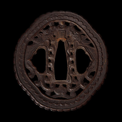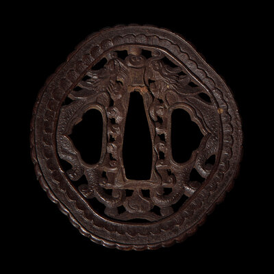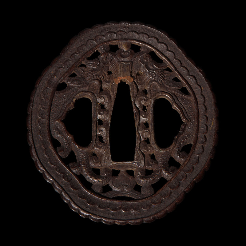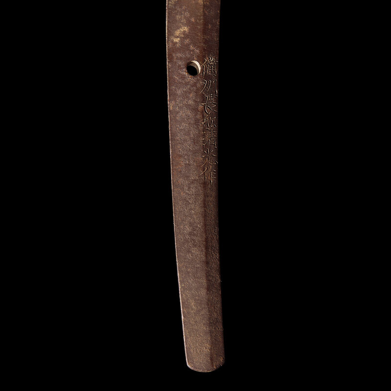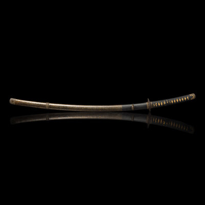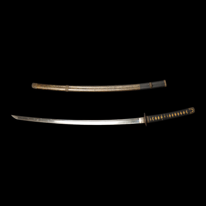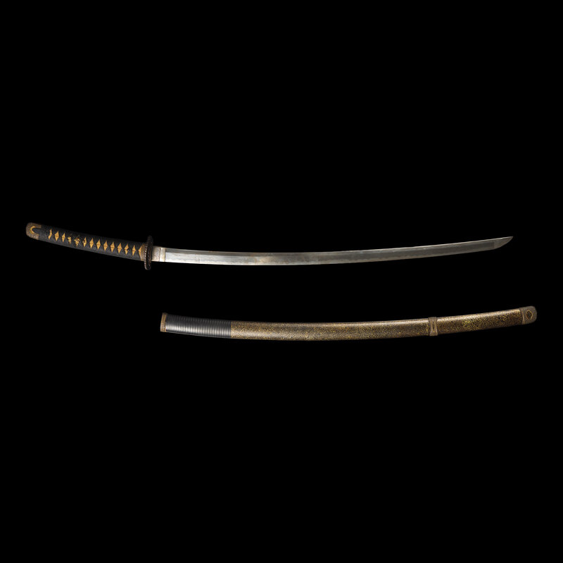 The blade signed "備州長船清光作"(Bishū Osafune Kiyomitsu) , the handle embellished with a pair of gold dragon form menuki, with a gold lacquer scabbard.