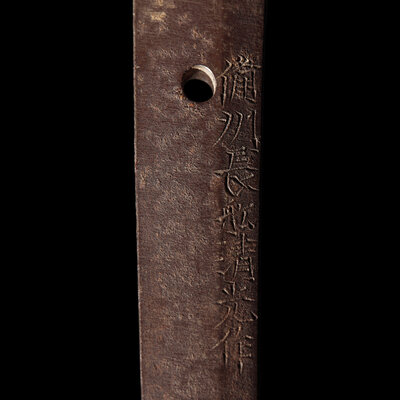 Length of blade 36 in., 91.4 cm. Length with scabbard 39 3/8 in., 100 cm.