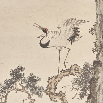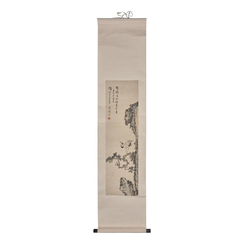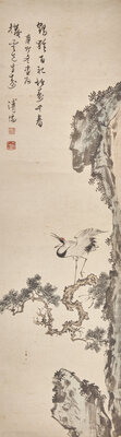 款識:鶴齡百祀,松壽千春。辛卯(1951)冬畫為拨云先生壽。溥儒。
