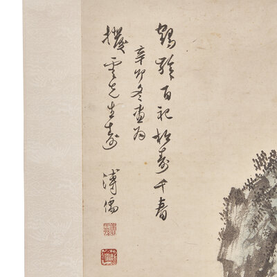 Signed and inscribed, with a dedication, dated lunar year xinmao (1951), with two artist's seals, Jiu wang sun, Pu Ru.