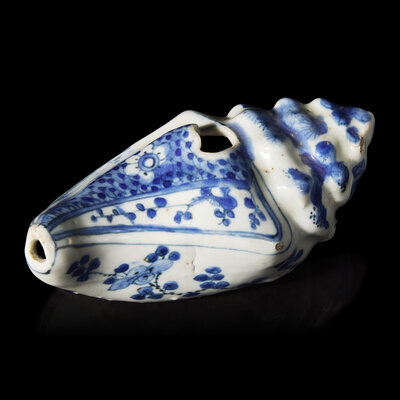 明萬曆 青花海螺式硯滴