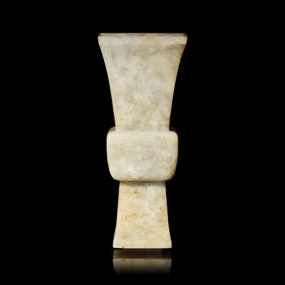 During the Song dynasty and later periods, literati and antiquarians revived the gu form, often recreating it with increasingly ornate patterns. The Qianlong Emperor also paid tribute to this archaic ritual vessel; for a closely comparable example, bearing a similar decoration and an imperial poem inscribed to the interior, see the piece in the collection of the Taipei Palace Museum (accession no. 故玉002484N000000000).