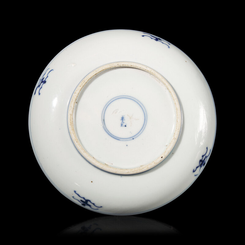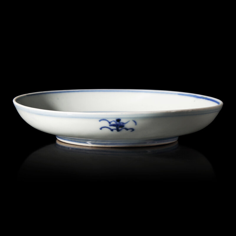 A Chinese Blue and White Porcelain 'Scholar' Dish, 17th Century