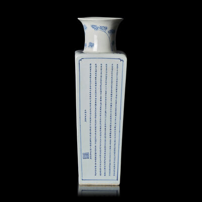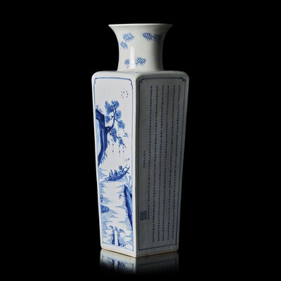 A Chinese Blue and White 'Odes on the Red Cliff' Square Vase, Kangxi Mark and od The Period, Circa 1690s