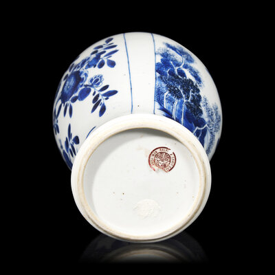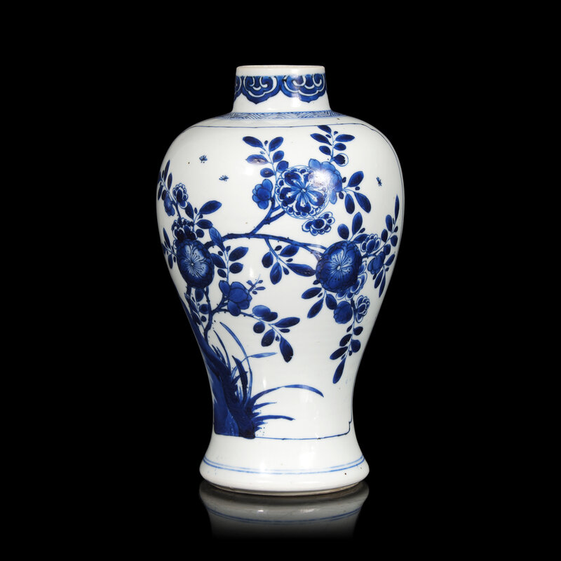 A Chinese Blue and White Porcelain 'Landscape' Meiping Vase, Kangxi Period