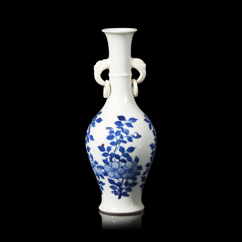 A Chinese Blue and White Porcelain Handled Vase, Kangxi Period