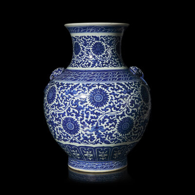 近代 乾隆款青花纏枝蓮紋鋪首壺
