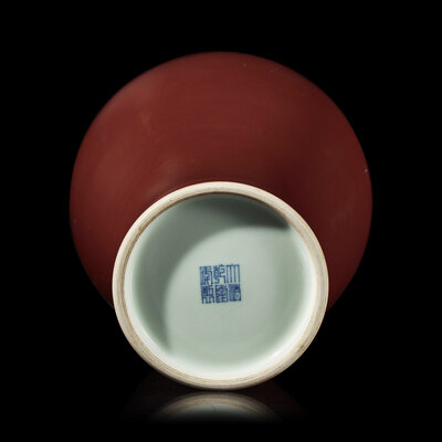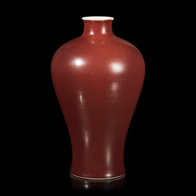 A Chinese Copper Red Glazed Vase, Meiping, Qianlong Six-Character Seal Mark and of the Period
