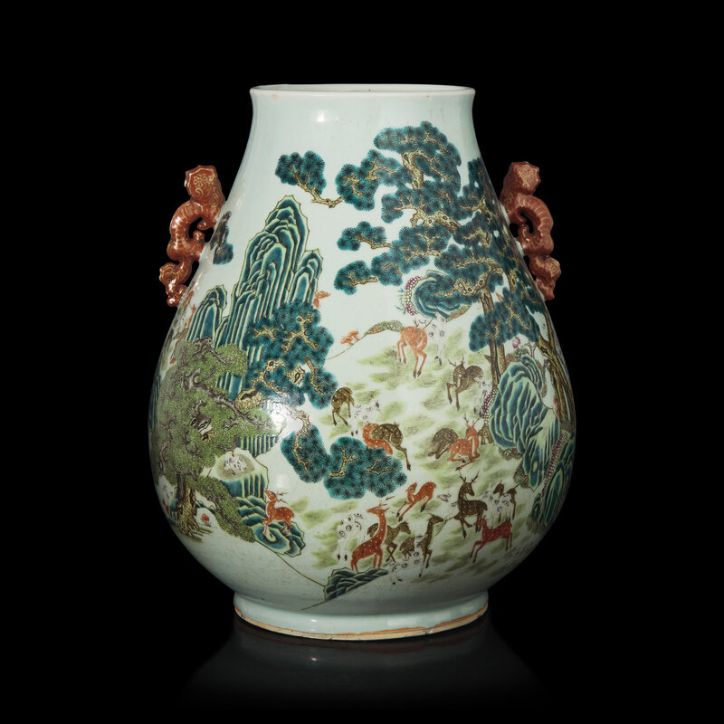 晚清/民国 粉彩百鹿尊