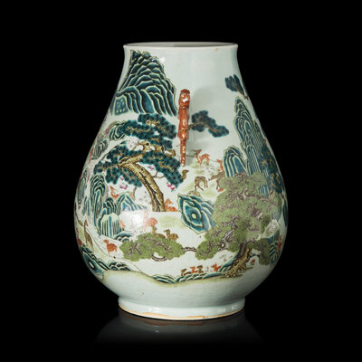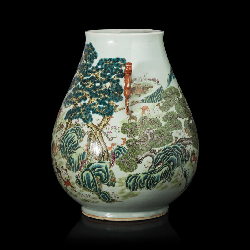 A Large Chinese Famille Rose 'Hundred Deer' Hu Vase, 19th/20th Century