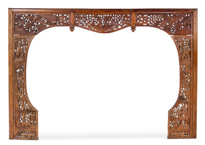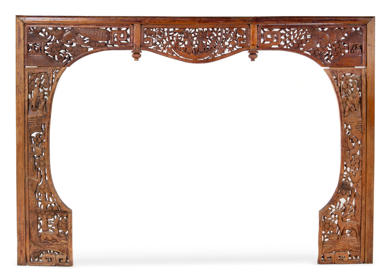 A Large Chinese Carved Softwood Frame Assembled height 57 x width 80 3/4 x depth 1 1/4 inches.