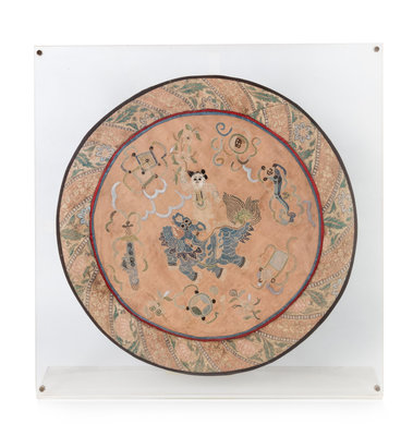 Two Chinese Embroidered Silk Panels Diameter of larger 13 7/8 inches.