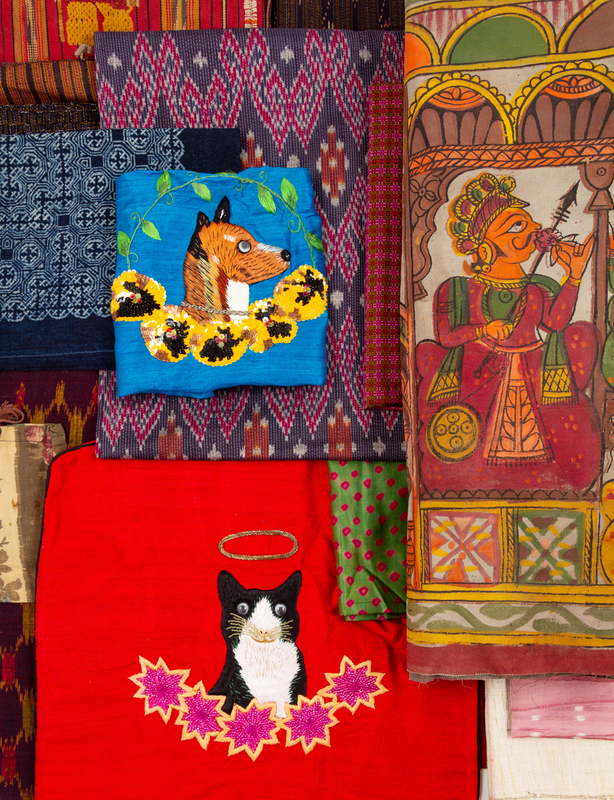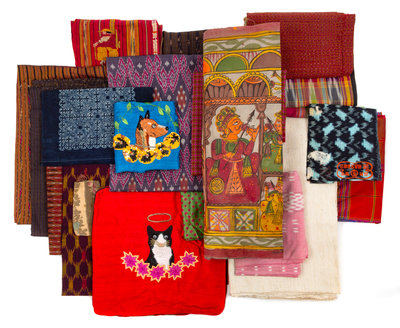 Twenty Asian Textiles Approximate length of largest 70 inches.