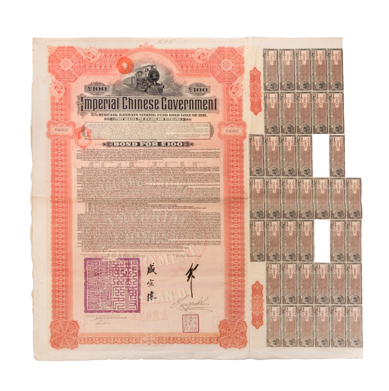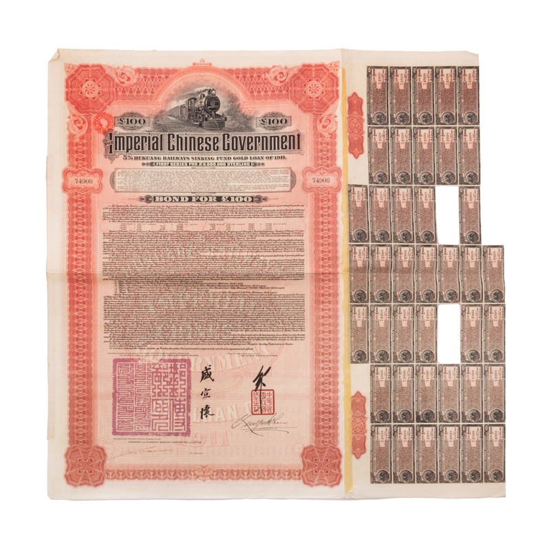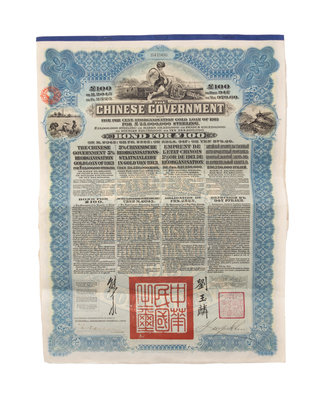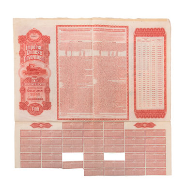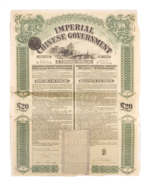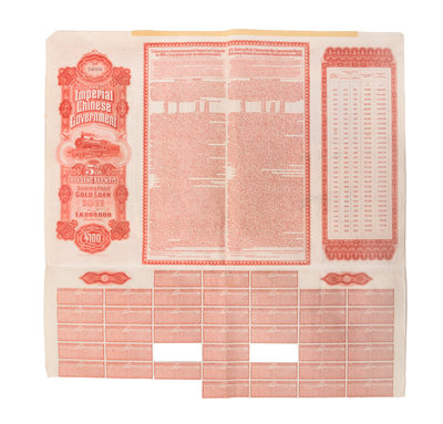 Four Chinese Paper Bonds Largest 21 1/4 x 14 1/2.