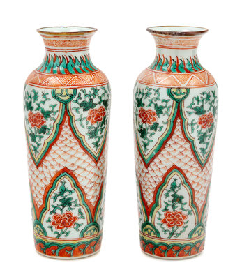 A Pair of Japanese Kutani Porcelain Vases Height 9 inches.