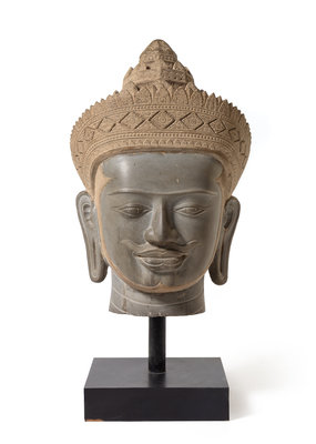 A Large Cambodian Carved Stone Head of Buddha Height 30 inches.