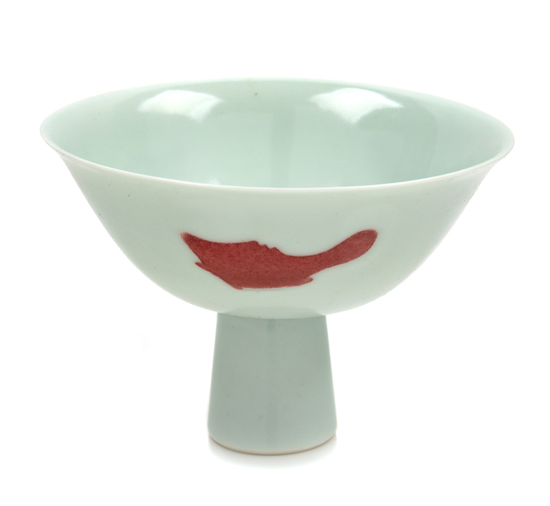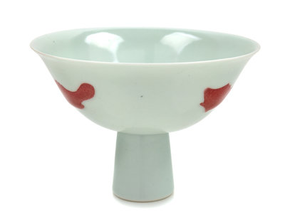A Chinese Underglaze Red Decorated Porcelain Stem Bowl Height 4 1/4 inches.