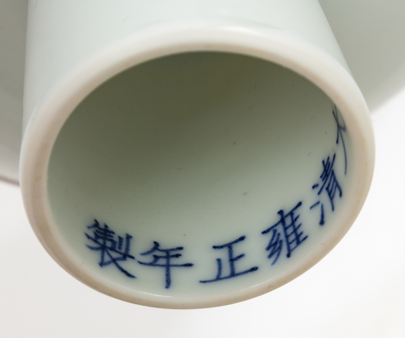 decorated with an underglaze red fish, bearing an apocryphal Yongzheng six-character mark in underglaze blue.