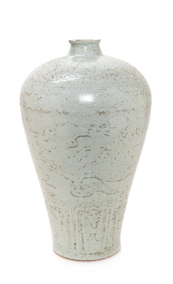 A Chinese Carved White Glazed Porcelain Meiping Vase Height 17 inches.