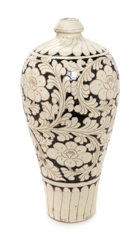 A Chinese Cizhou Style Sgraffitao Peony Porcelain Vase, Meiping Height 14 1/2 inches.