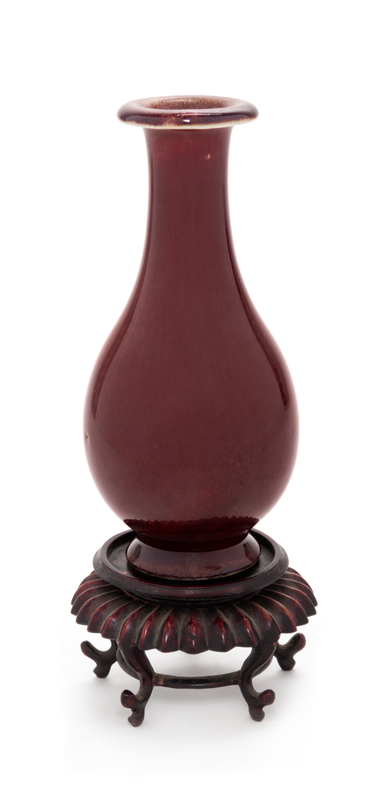 A Chinese Sang-de-Boeuf Glazed Porcelain Vase Height 5 3/4 inches.