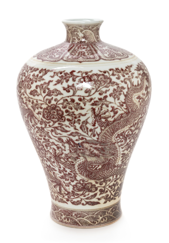 A Chinese Underglaze Copper-Red Porcelain Vase, Meiping Height 12 3/4 inches.