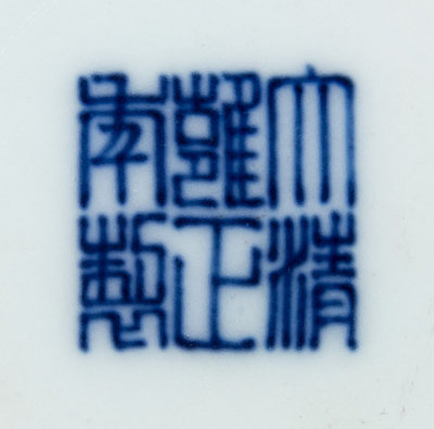 each having a globular body, bearing an apocryphal Yongzheng six-character mark in underglaze blue.