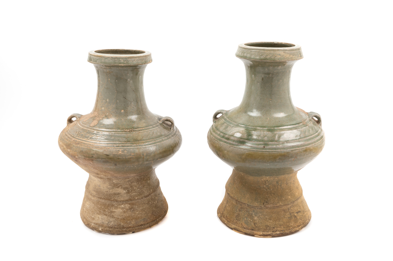 Two Chinese Celadon Glazed Pottery Jars Height 14 inches.