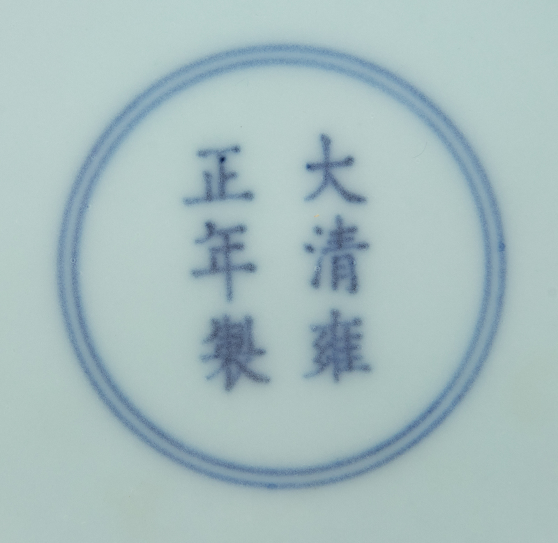 the mouth rim molded as a row of radiating petals, the underside bearing an apocryphal Yongzheng six-character mark in underglaze blue.