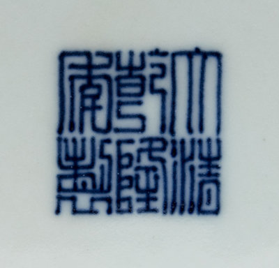 A Chinese Blue Glazed Carved Porcelain Bottle Vase Height 13 3/4 inches.