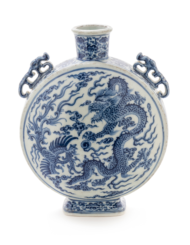 A Chinese Blue and White Porcelain Mook Flask Height 9 1/2 inches.