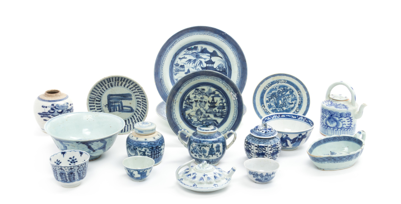 Seventeen Chinese Blue and White Porcelain Wares Diameter of largest 10 inches.