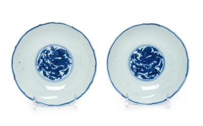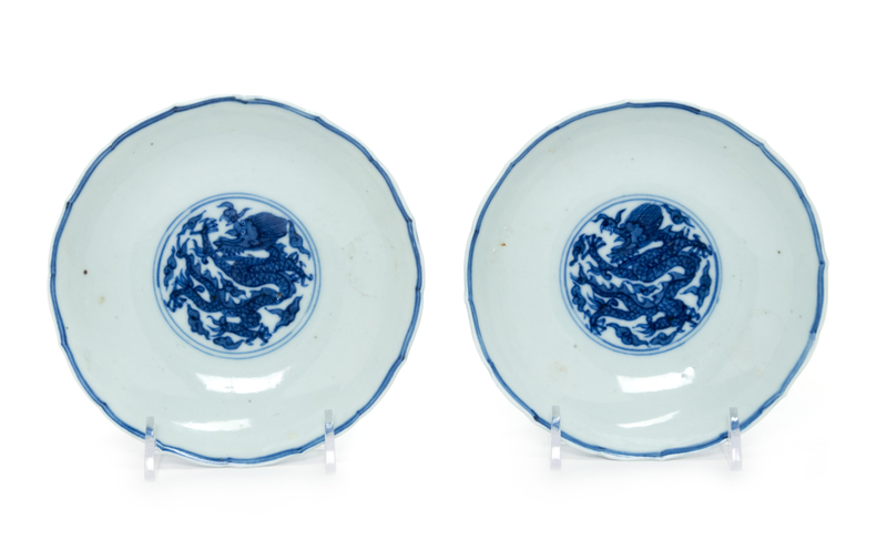 decorated with dragon roundels, the underside bearing an apocryphal Wanli six-character mark in underglaze blue.