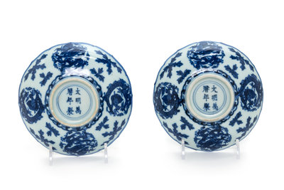 A Pair of Chinese Blue and White Porcelain Shallow Bowls Diameter 6 inches.