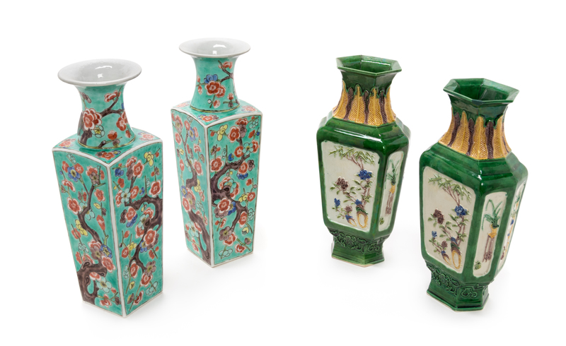 Two Pairs of Chinese Porcelain Vases Height of taller pair 10 inches.