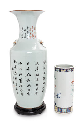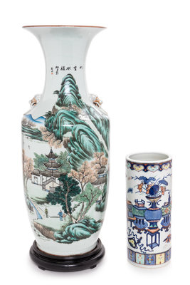 Two Chinese Famille Rose Porcelain Vases Height of tallest 22 1/2 inches.