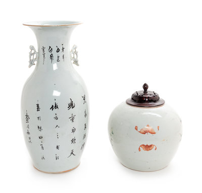 Two Chinese Famille Rose Porcelain Articles Height of vase 17 1/4 inches.