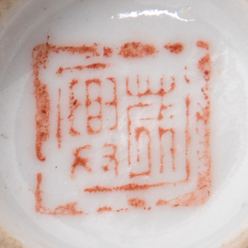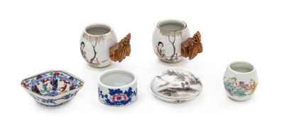 Five Chinese Polychrome Enameled on Porcelain Articles Height of tallest 2 1/4 inches.