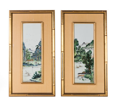 Two Chinese Polychrome Enameled Porcelain Plaques 15 1/4 x 5 1/2 inches.
