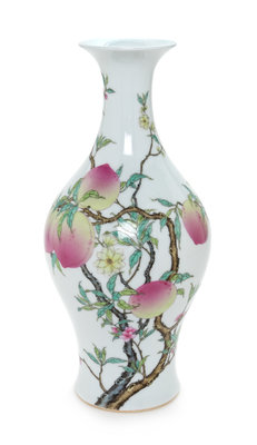 A Chinese Famille Rose Porcelain Vase Height 15 3/4 inches.