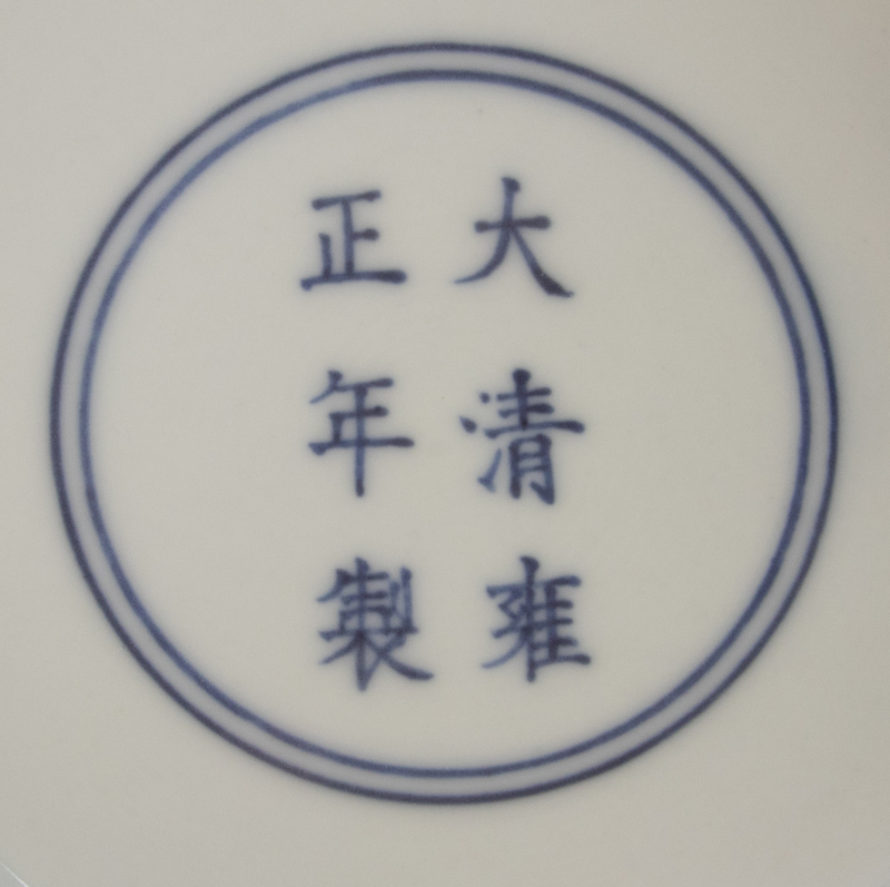 painted with peach branches, the underside bearing an apocryphal Yongzheng six-character mark in underglaze blue.