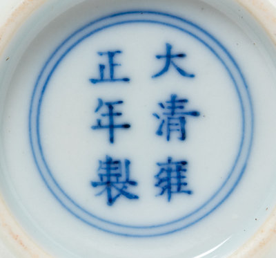painted with ladies, the underside bearing an apocryphal Yongzheng six-character mark in underglaze blue.