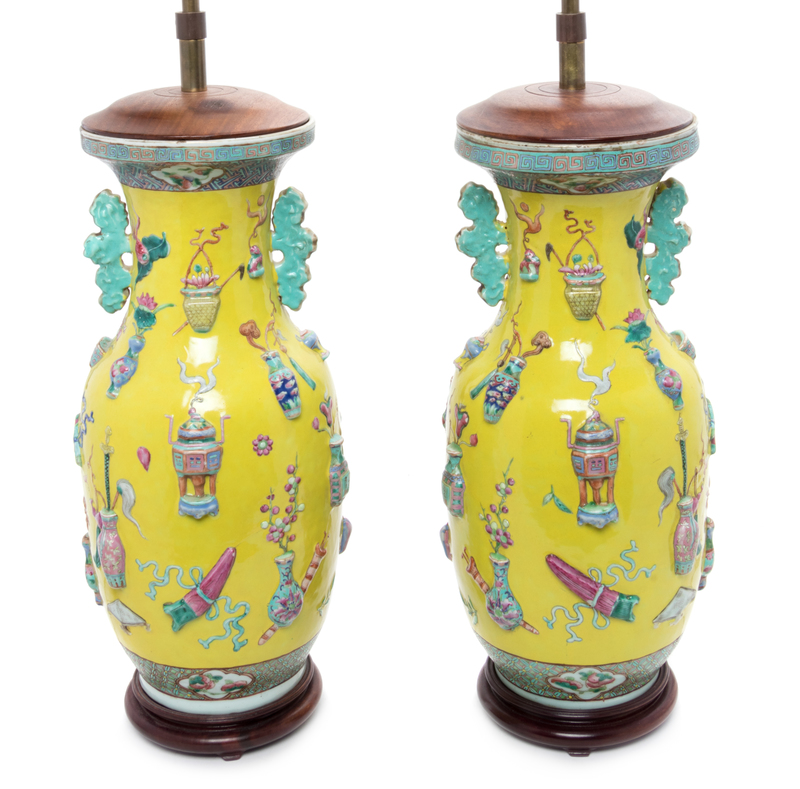 A Pair of Chinese Famille Rose Porcelain Vases Height 18 inches.